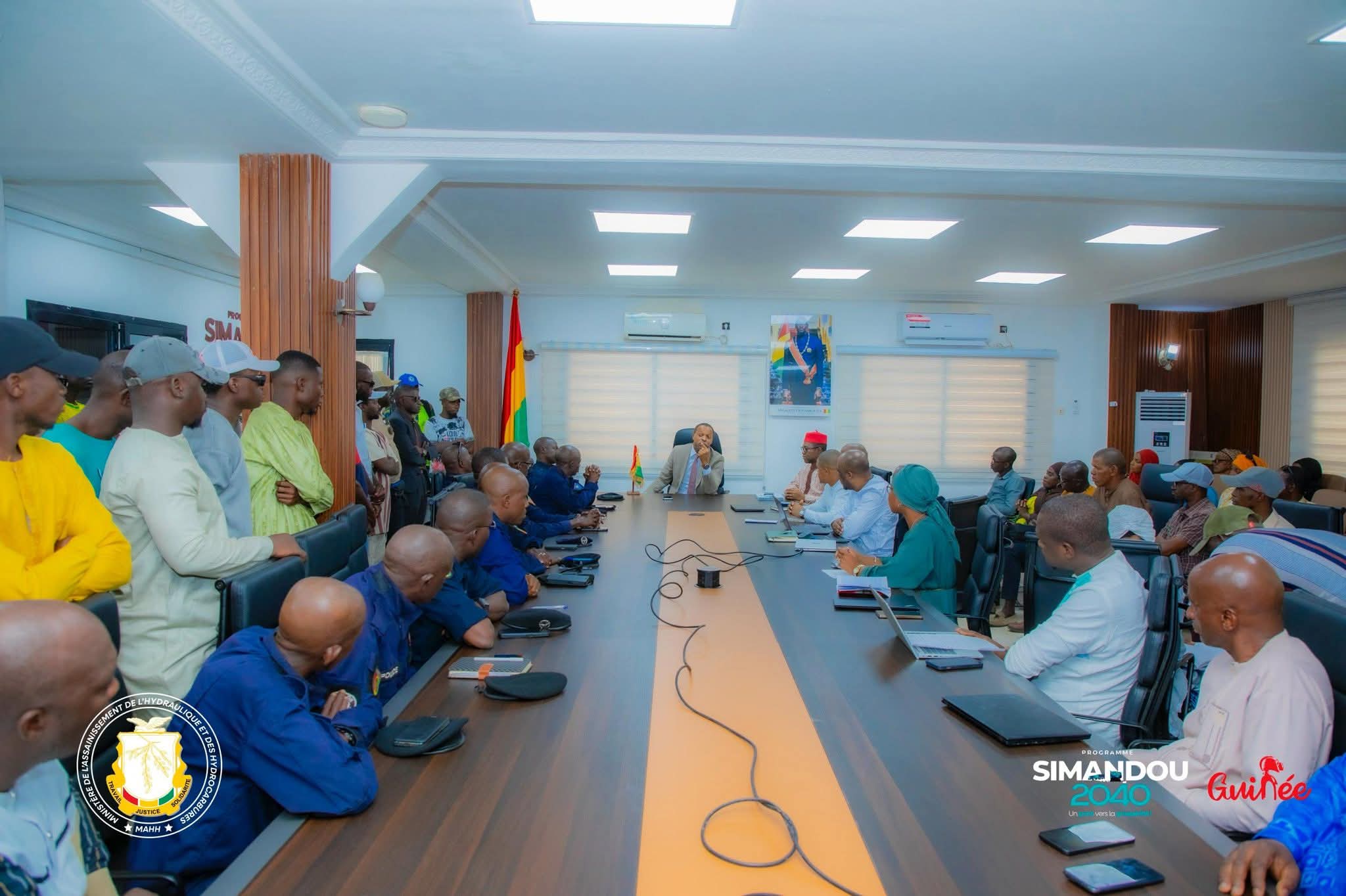 À la veille de l’entrée en vigueur des nouvelles dispositions relatives à la lutte contre le déversement anarchique des eaux usées, le Ministre de l’Assainissement, de l’Hydraulique et des Hydrocarbures, Aboubacar CAMARA, a présidé, ce mercredi 04 mars 2026, une réunion de travail avec les agents de la Brigade nationale de salubrité dont l’effectif monte en puissance pour une ville propre ainsi que les responsables de l’Agence Nationale de Salubrité Public.