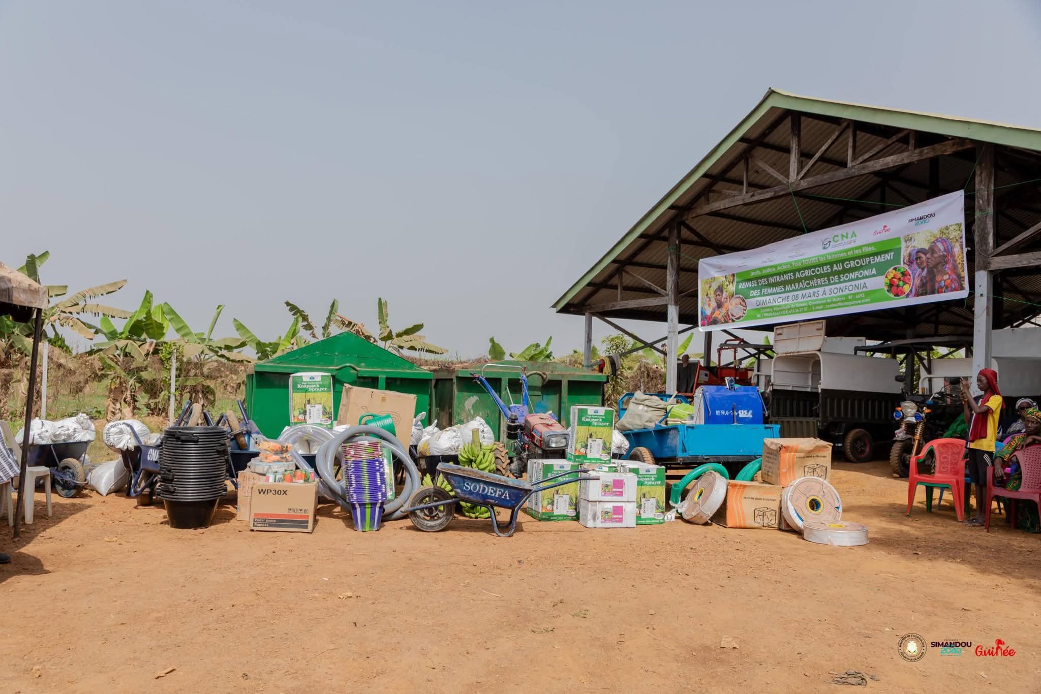 Cet appui concret concerne la construction d’un magasin de stockage, l’acquisition de matériels agricoles, la réhabilitation de puits améliorés et l’installation de châteaux d’eau d’une capacité de 10 000 m³ chacun. De son côté, le Ministère de l’Agriculture a renforcé cet accompagnement en mettant à la disposition du groupement 𝐭𝐫𝐨𝐢𝐬 𝐭𝐫𝐢𝐜𝐲𝐜𝐥𝐞𝐬 destinés à faciliter le transport des produits maraîchers et des engrais. Cet accompagnement du ministère est la matérialisation de la promesse de la 𝐌𝐢𝐧𝐢𝐬𝐭𝐫𝐞 𝐝𝐞 𝐥’𝐀𝐠𝐫𝐢𝐜𝐮𝐥𝐭𝐮𝐫𝐞, Aminata Kaba lors sa visite au cours de laquelle les femmes avaient exprimé leurs difficultés dont le transport des intrants.